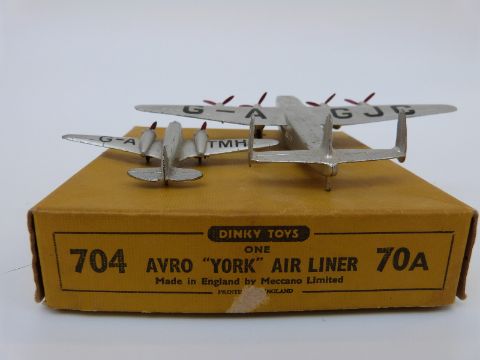 Dinky Toys Avro York Air Liner 704 in original box together with a Dinky Toys Light Transport Aeroplane.
