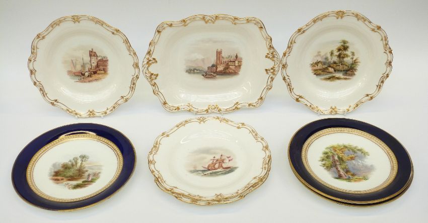 Three Grainger Worcester hand decorated cabinet plates and five dessert plates, probably Spode