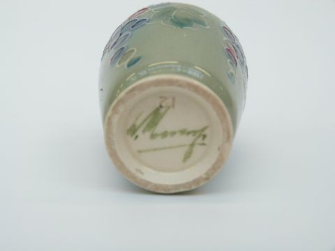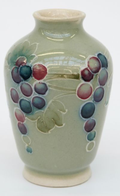 Moorcroft miniature vase in the Leaf and Berry pattern, signed Moorcroft to base, 7cm tall