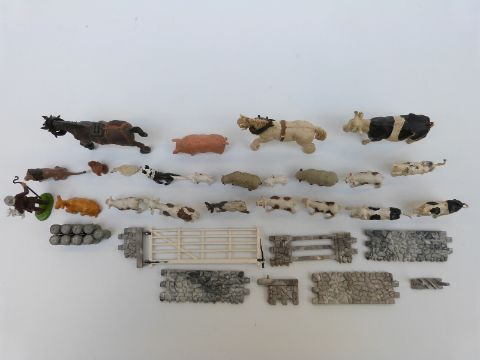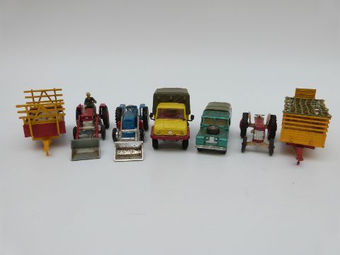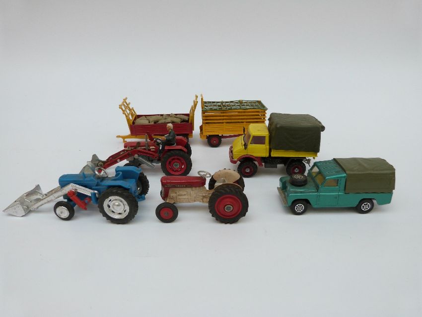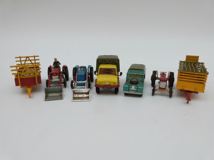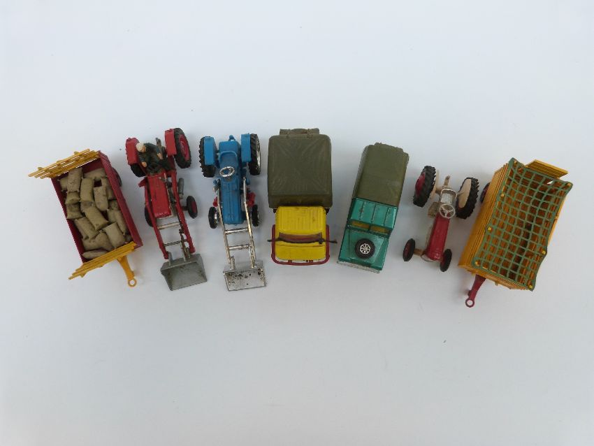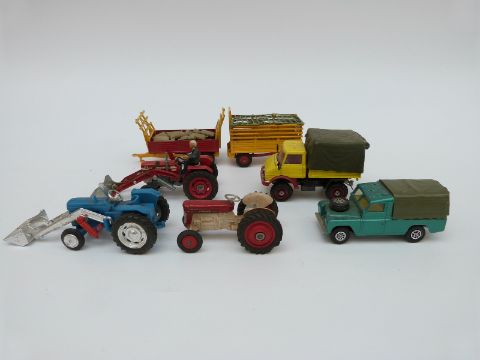 A collection of Britains and Corgi diecast model vehicles and farm accessories, some in original boxes