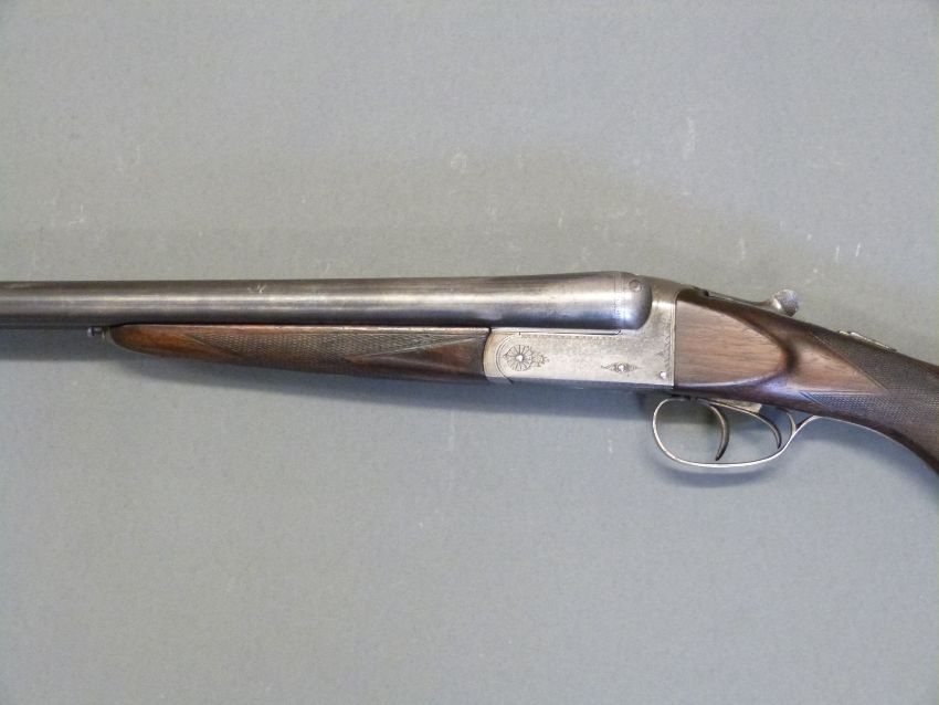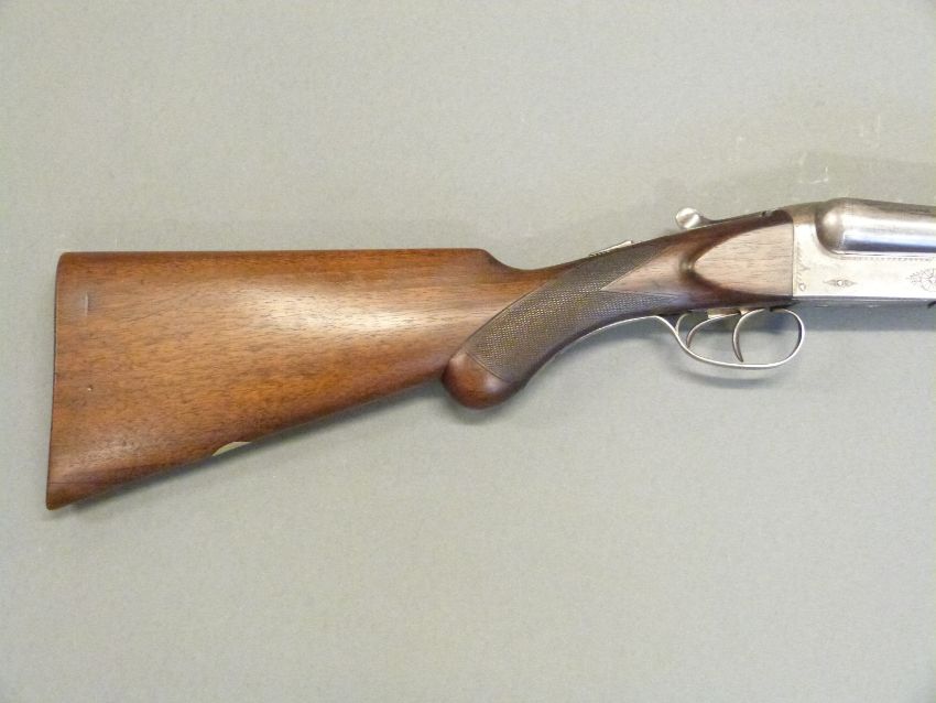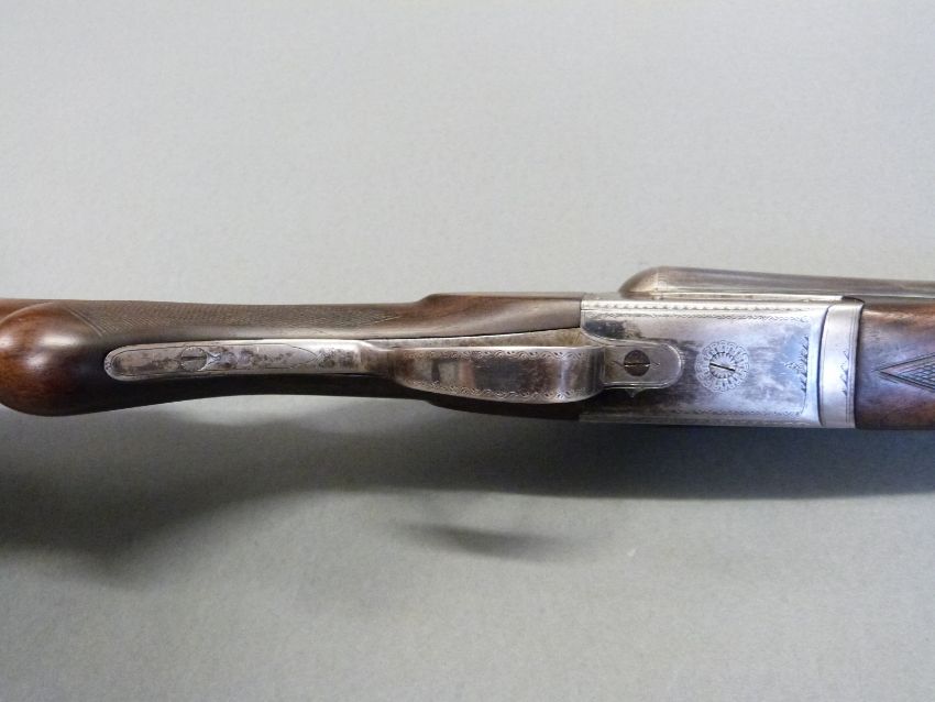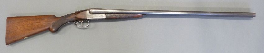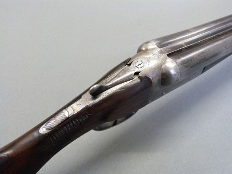 Henry Atkin 12 bore side by side shotgun with engraved lock, top plate, top lever, underside and trigger guard, vacant inlaid cartouche to the underside of the stock, chequered semi-pistol grip and forend, double trigger and named 3 inch cambered 30 inch barrels, overall length 117.5cm, NVSN. PLEASE NOTE THAT A VALID RELEVANT FIREARMS/SHOTGUN CERTIFICATE IS REQUIRED TO HANDLE/PURCHASE THIS ITEM.
