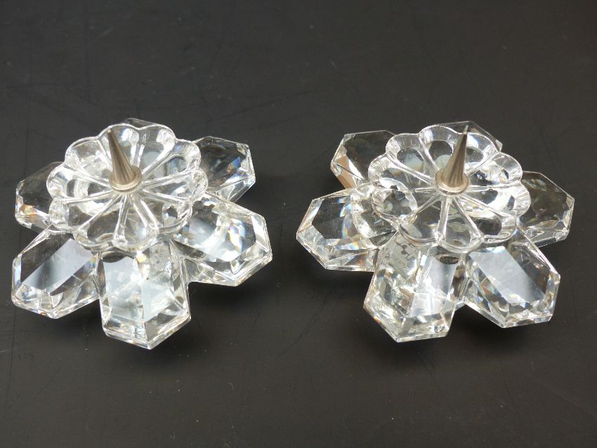 Six Swarovski Crystal paperweights and candle holders in the form of flames, birthday cake, pear etc, together with two Swarovski bells