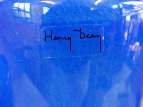 Two blue glass vases by Henry Dean, labelled, tallest 31.5cm