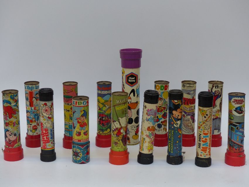 Fifteen novelty film and TV related kaleidoscopes including Mickey Mouse, Noddy, Rupert, Thomas The Tank, Postman Pat, Magic Roundabout etc