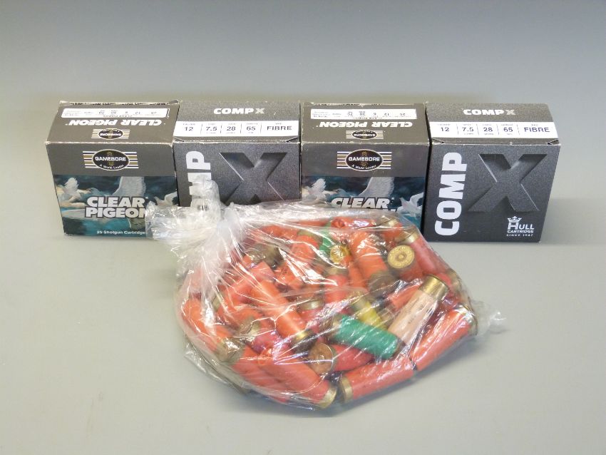 One-hundred-and-fifty various mainly 12 gauge shotgun cartridges including Gamebore Clear Pigeon, Hull Comp X, Eley etc, some in original boxes. PLEASE NOTE THAT A VALID RELEVANT FIREARMS/SHOTGUN CERTIFICATE IS REQUIRED TO HANDLE/PURCHASE THIS ITEM.