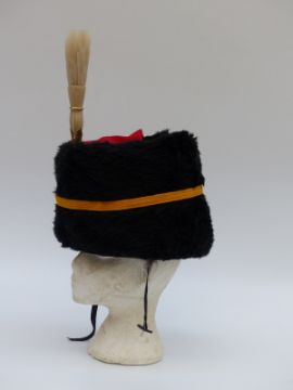 British Army Royal Horse Artillery busby with red cloth bag and plume