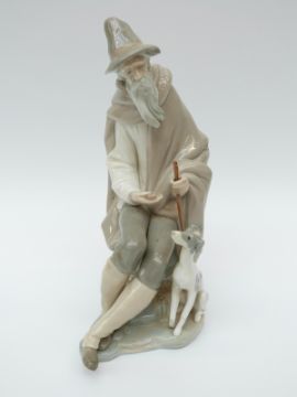 A Lladro figure of a man with a dog
