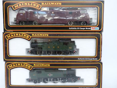 Three Mainline 00 gauge railway locomotives comprising GWR 6600 0-6-2T, BR 6100 2-6-2 prairie table and type 4 diesel hydraulic, all in original boxes