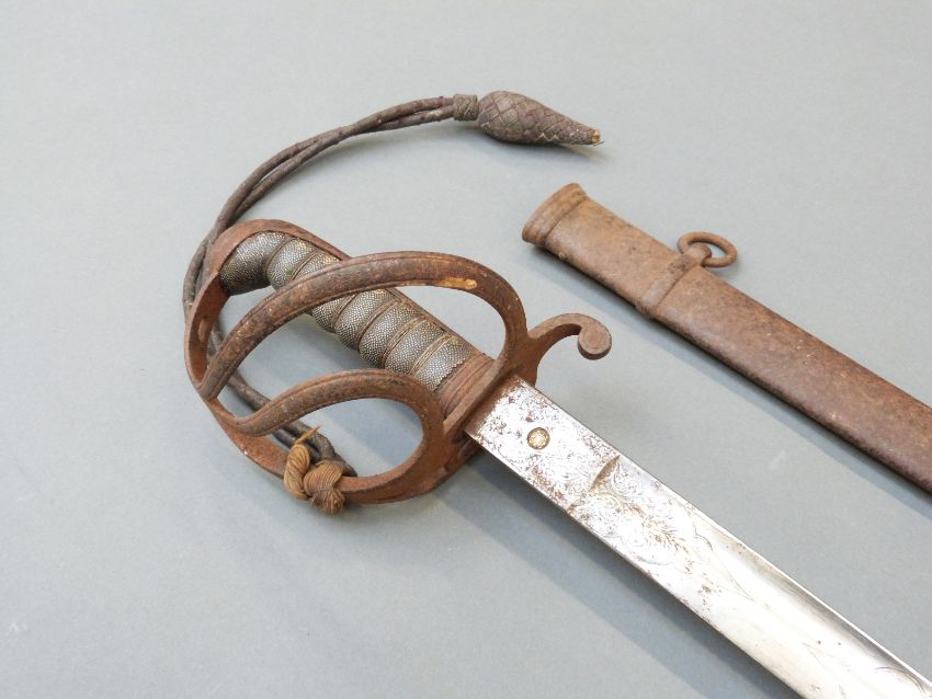 Victorian British 1821 Light Cavalry sword, marked Harman & Co Calcutta to blade, shagreen and wire handle with sword knot and metal scabbard, blade length 89cm
