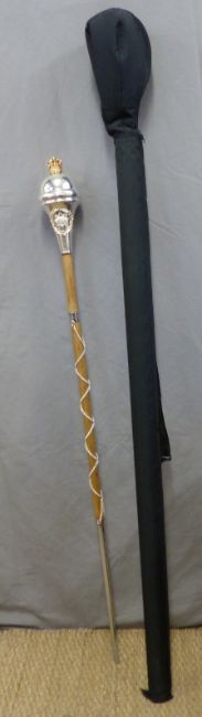 British Army Scots Guards Drum Major's mace, Queen Elizabeth II cypher and regimental badge, complete with carry case, total length 150cm