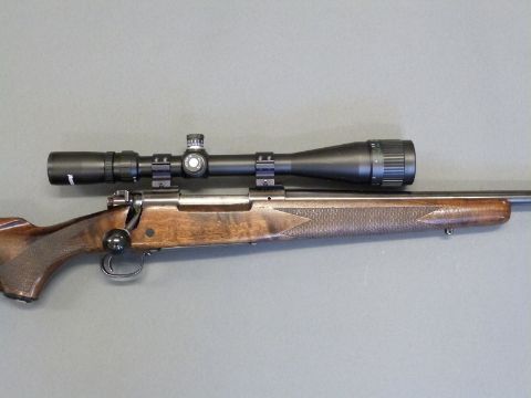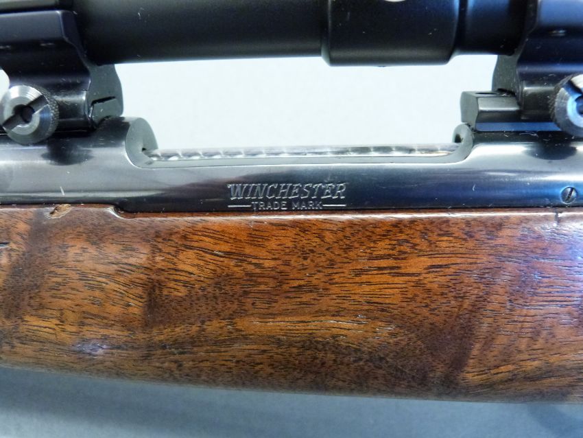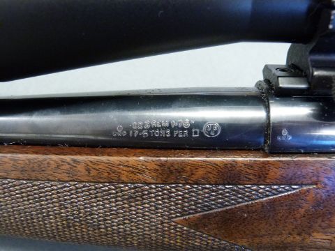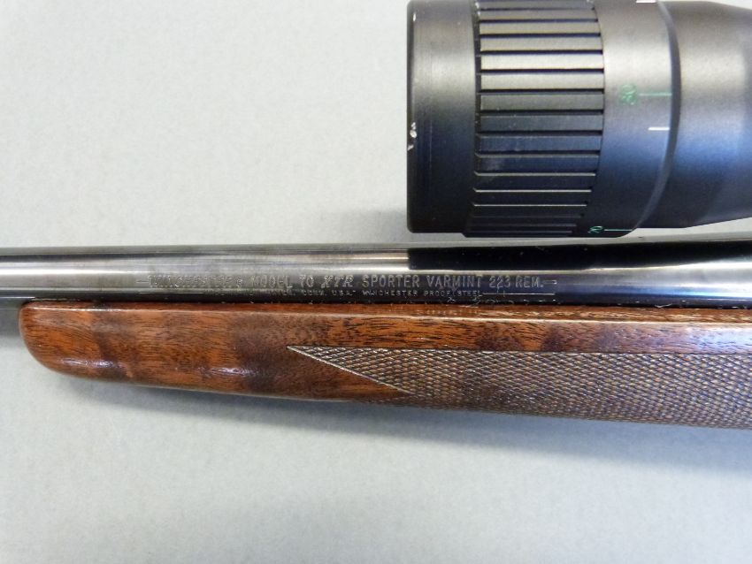 Winchester model 70 XTR Sporter Varmint .223 REM bolt action rifle with chequered semi-pistol grip and forend, raised cheek piece to stock, sling mounts, Hawke VAR 832x42M scope and 19inch barrel, overall length 108.5cm, serial number 61644816. PLEASE NOTE THAT A VALID RELEVANT FIREARMS/SHOTGUN CERTIFICATE IS REQUIRED TO HANDLE/PURCHASE THIS ITEM.