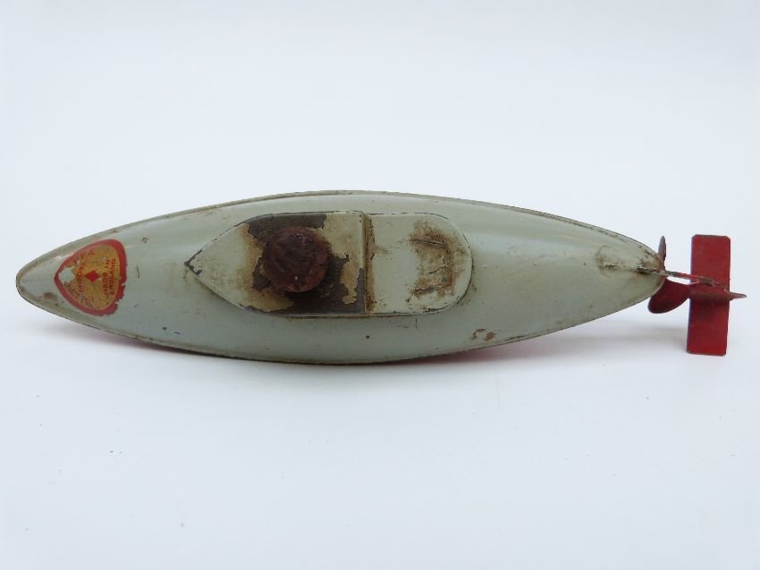 Sutcliffe Models clockwork tinplate model Unda-Wunda submarine.