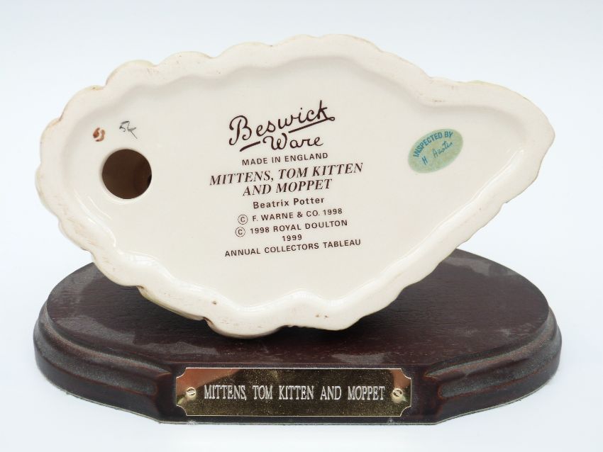 Beswick Beatrix Potter tableau Mittens, Tom Kitten and Moppet in original box with plinth and certificate