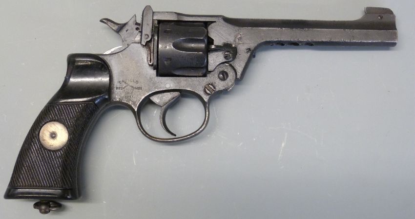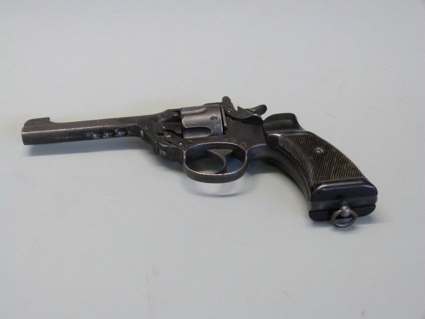 Deactivated Enfield No2 Mk1 six shot single action .38 revolver with moulded plastic grips, suspension loop, frame stamped with crown and ENFIELD No2 Mk1 1931 and five inch barrel, serial number A4919, with de-activation certificate dated 2018.