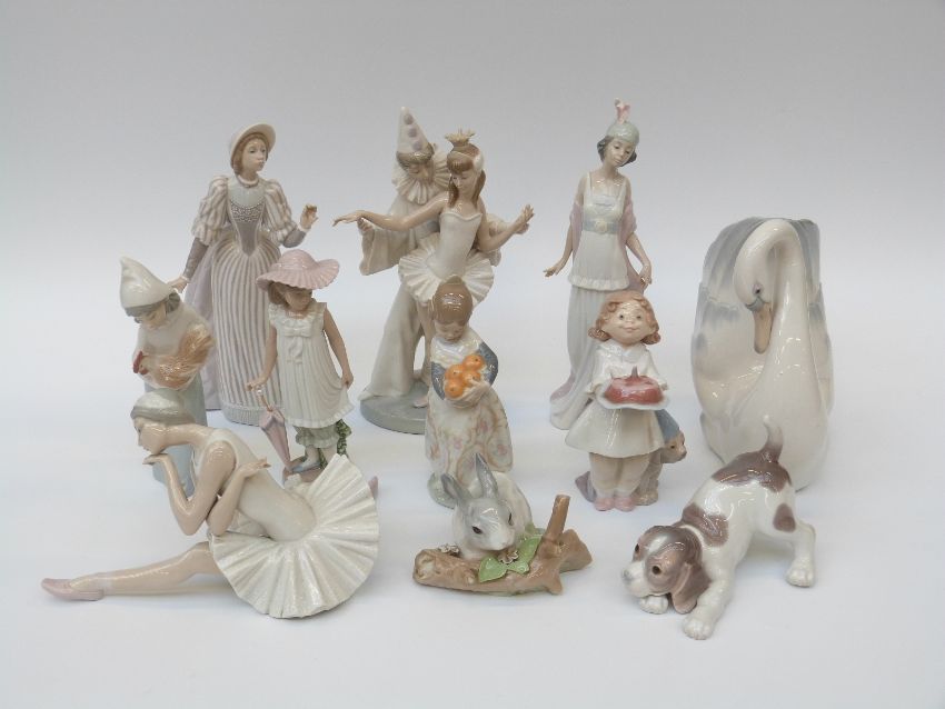 A collection of eleven Lladro and Nao figures