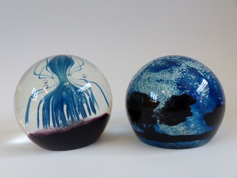 Four Caithness Glass limited edition Colin Terris designed paperweights Space Flower 77/100, Nomad 677/1000, Enchanted Forest 45/1000 and Jubilee Floating Crown 506/1000, all boxed with certificates