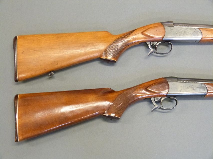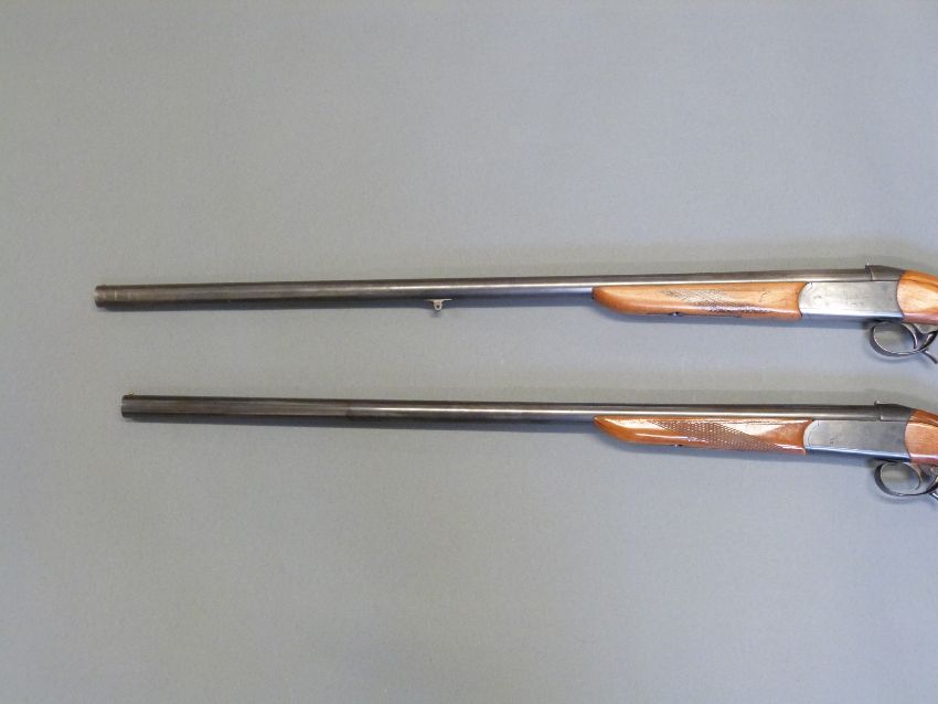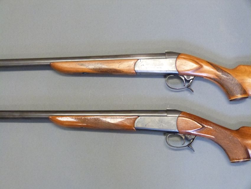Two Russian Baikal single barrelled 12 bore shotguns both with engraved locks, chequered semi-pistol grips and forends and ball front sights, one with sling mounts and 30 inch barrel dated 1966, overall length 118.5cm, length of pull 38cm, serial number Y04331, the other with 28.75 inch barrel, overall length 115cm, length of pull 37.5cm, serial number A29183. PLEASE NOTE THAT A VALID RELEVANT FIREARMS/SHOTGUN CERTIFICATE IS REQUIRED TO HANDLE/PURCHASE THIS ITEM.