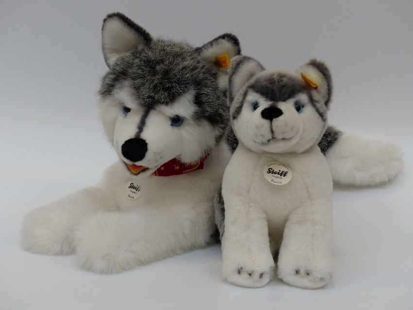 Two Steiff Original Teddy Bears husky dogs Bernie large and small
