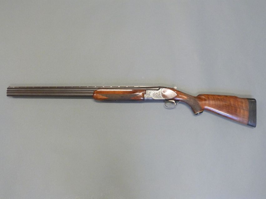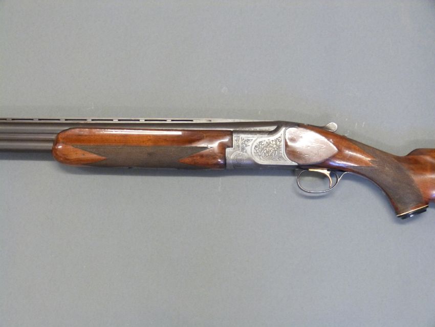 Miroku 800 12 bore over and under ejector shotgun with engraved lock, top plate, top lever, trigger guard and underside, 'B C Miroku' inlaid in silver, chequered semi-pistol grip and forend, vented top rib, single gilt trigger and 28" barrels choked 1/4 and 3/4, overall length 115.5cm, length of pull 37cm, serial number 566057. PLEASE NOTE THAT A VALID RELEVANT FIREARMS/SHOTGUN CERTIFICATE IS REQUIRED TO HANDLE/PURCHASE THIS ITEM.