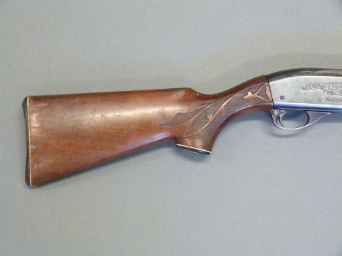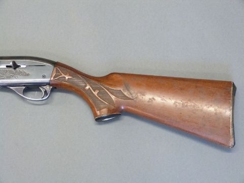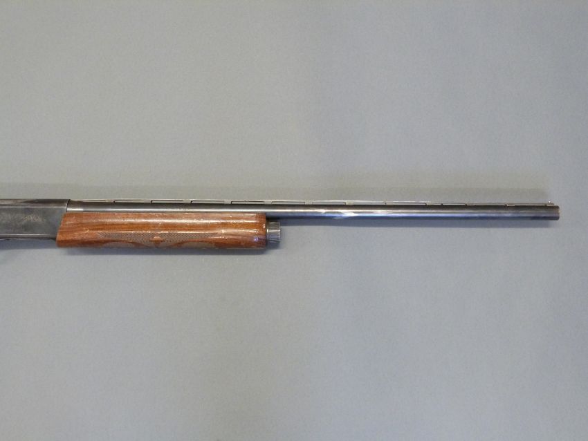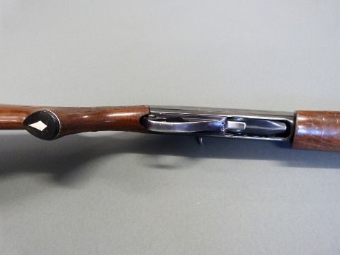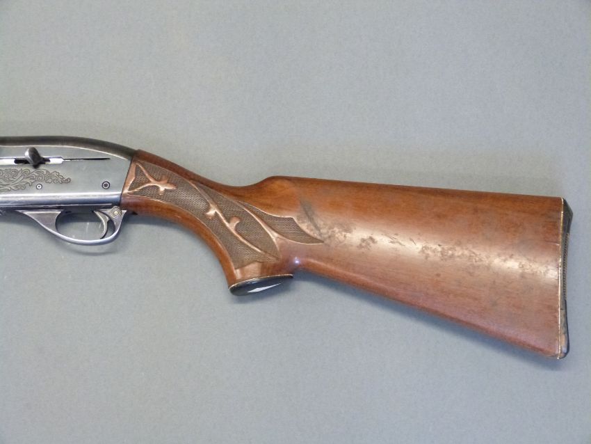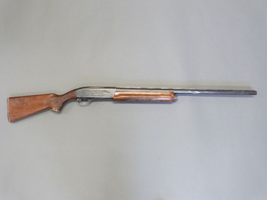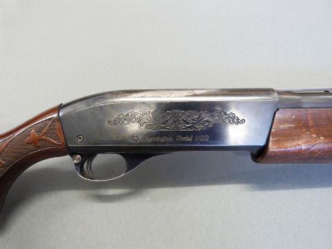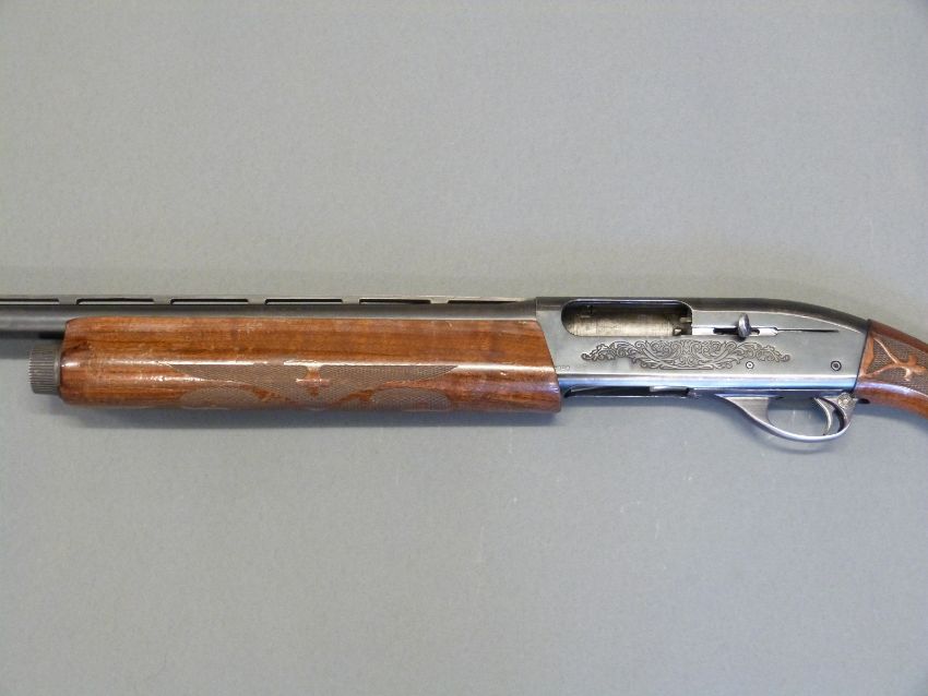 Remington model 1100 12 bore semi-automatic shotgun with ornately carved semi-pistol grip and forend, engraved lock, vented top rib, ball sight and 28inch barrel, overall length 122cm, length of pull 35.5cm, serial number N295869V. PLEASE NOTE THAT A VALID RELEVANT FIREARMS/SHOTGUN CERTIFICATE IS REQUIRED TO HANDLE/PURCHASE THIS ITEM.