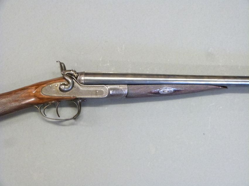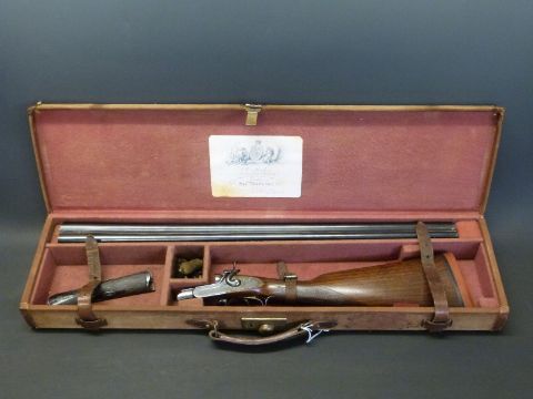 James Purdey 16 bore side by side hammer action shotgun with fine scrolling engraving to the locks, stylised dolphin hammers, top plate, underside, trigger guard and thumb lever, chequered grip and forend, vacant inlaid gold wrist cartouche, double trigger and 29 inch barrels engraved 'J.Purdey 314 ½ Oxford Street, London', overall length 117cm, length of pull 38.5cm, serial number 5154, in fitted named canvas and leather carry case. The gun featured in a David Barker article in Sporting Gun magazine in November 2012 and comes with a copy of the article. PLEASE NOTE THAT A VALID RELEVANT FIREARMS/SHOTGUN CERTIFICATE IS REQUIRED TO HANDLE/PURCHASE THIS ITEM.