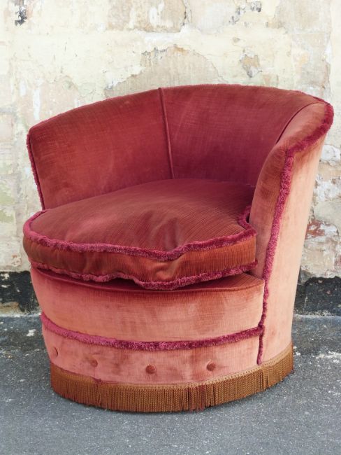 A red upholstered tub chair