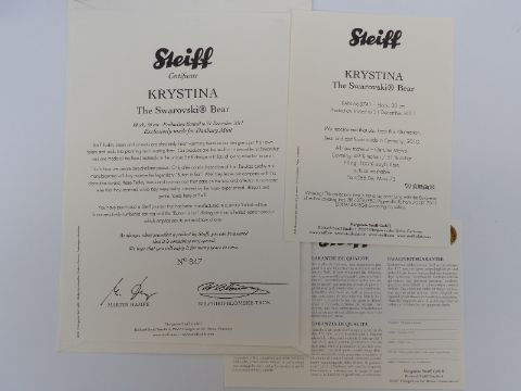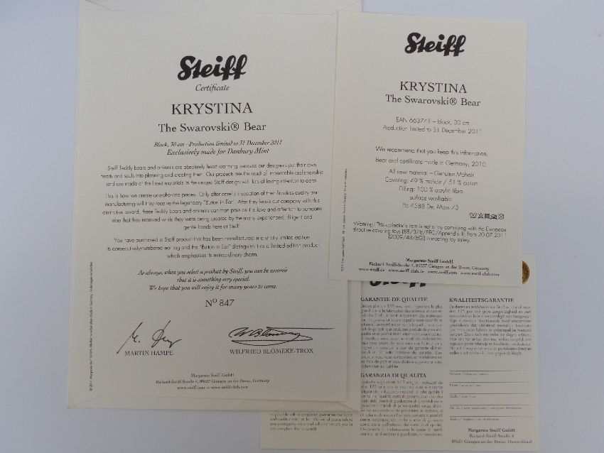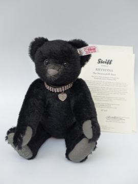Steiff Teddy Bear Krystina The Swarovski Bear with black mohair and heart choker necklace, 30cm, limited edition 847, with certificate of authenticity