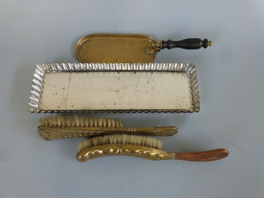 A quantity of kitchenalia including pie moulds, jelly moulds, crumb brushes including Art Nouveau, one formed as a bird etc