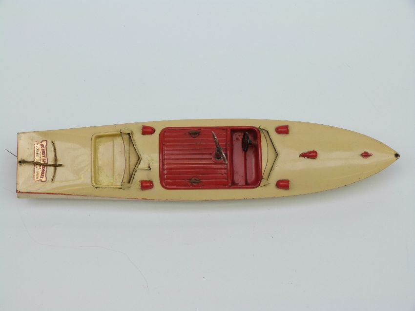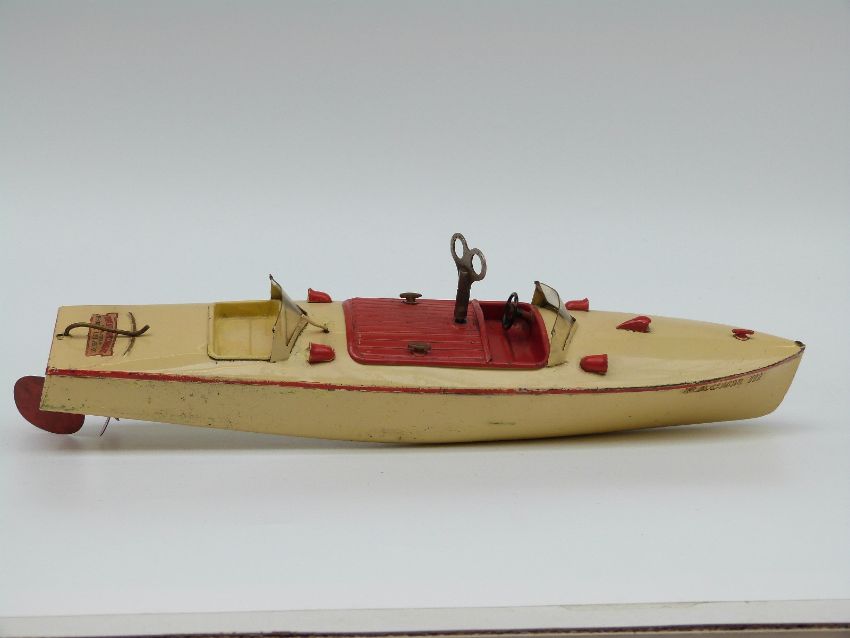 Hornby Racer III clockwork tinplate model speedboat with original keys