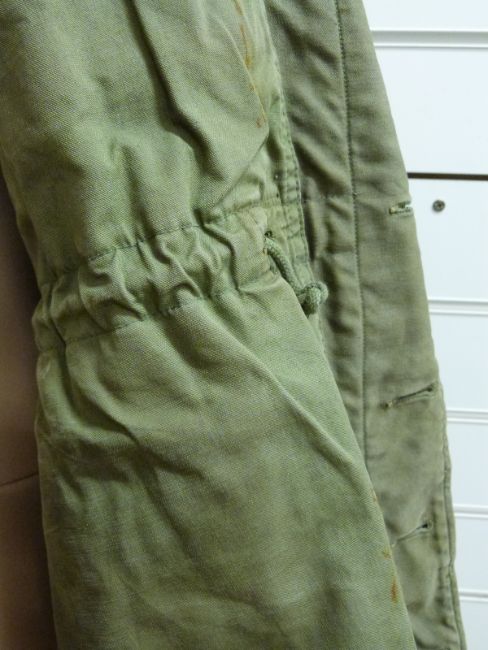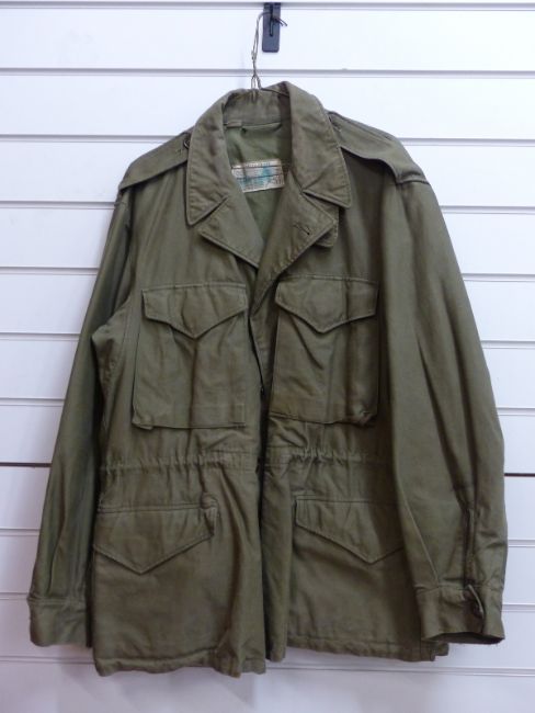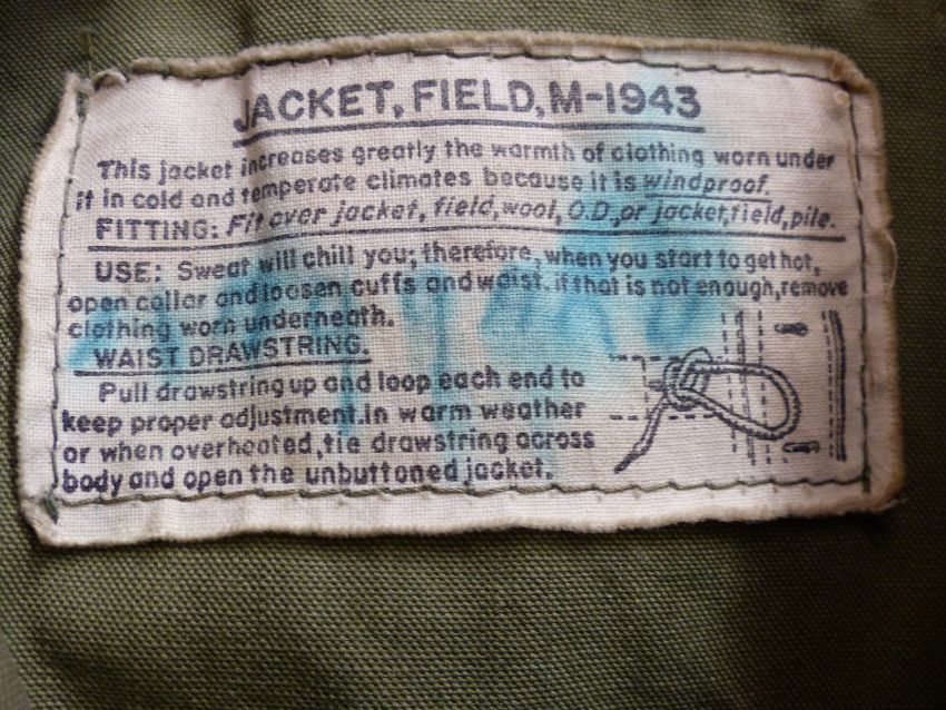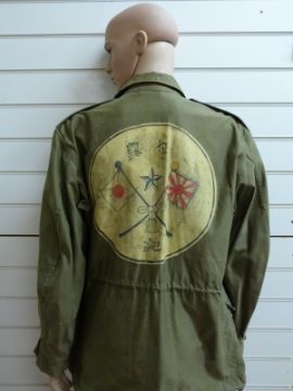 WWII US field jacket in 1943 pattern with hand painted motif on back, possibly flying tigers, Japanese interest