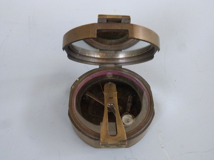 A brass military compass marked Brinton Compass, Thos Evans and Son London