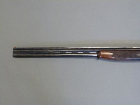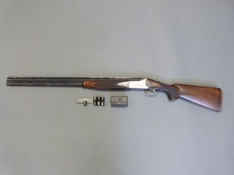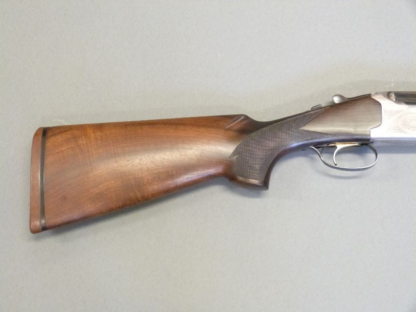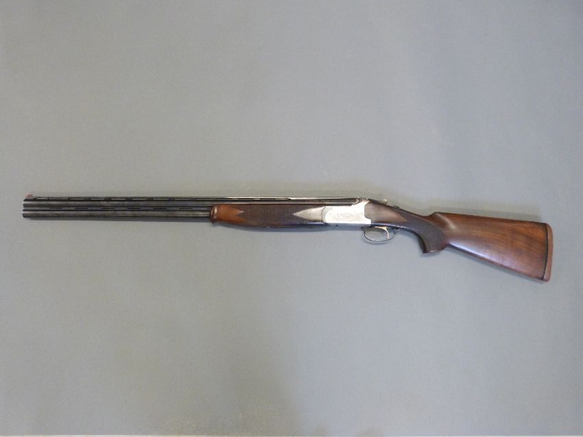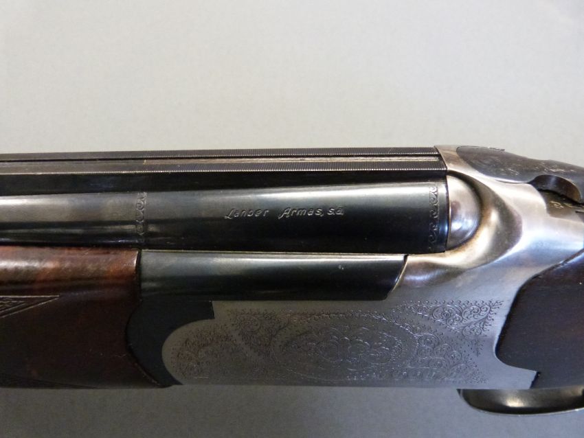 Lanber 12 bore over and under ejector shotgun with engraved lock, chequered semi-pistol grip and forend, vented top and centre ribs, single gilt trigger, five adjustable chokes and 29.5" barrels, overall length 118cm, length of pull 36cm, serial number 301465. PLEASE NOTE THAT A VALID RELEVANT FIREARMS/SHOTGUN CERTIFICATE IS REQUIRED TO HANDLE/PURCHASE THIS ITEM.