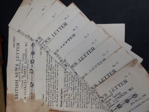 A vintage leather bound suitcase with Surg Lt Cdr M.A.Slee RNVR stencilled to face together with WWII ephemera
