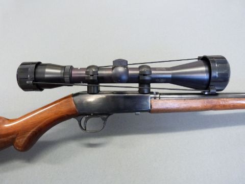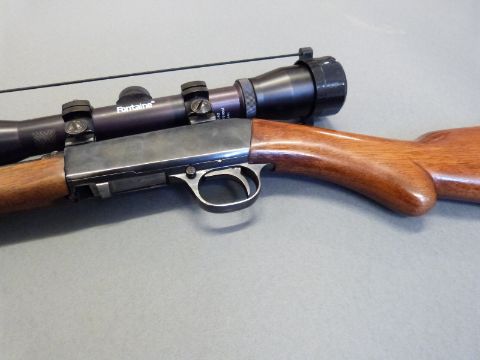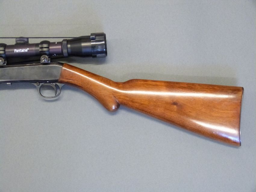 Browning .22LR semi-automatic take down rifle with Parker-Hale sound moderator, semi-pistol grip, Fontaine 1641 6x40 scope and named 25.5 inch barrel, overall length 109.5cm, serial number 170488. PLEASE NOTE THAT A VALID RELEVANT FIREARMS/SHOTGUN CERTIFICATE IS REQUIRED TO HANDLE/PURCHASE THIS ITEM.