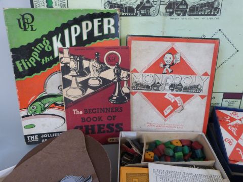 A collection of games and advertising items including Tuskers The Adventures of Henry, Disney hippo, Marmite jars, Escalado, brass tray etc