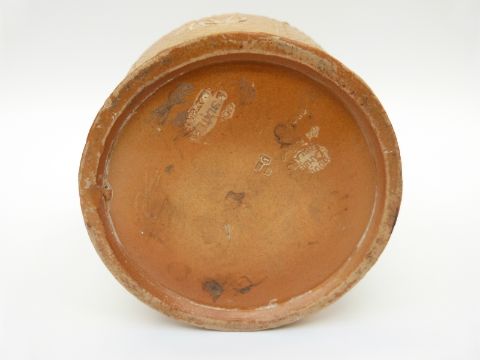 Doulton Lambeth stoneware motto jug in leather effect finish The Landlord's Promise, 22cm tall