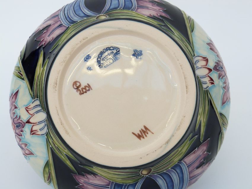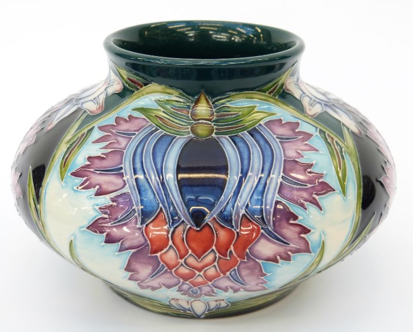 Moorcroft vase of squat form in Saadina pattern by Shirley Hayes, 12 cm tall