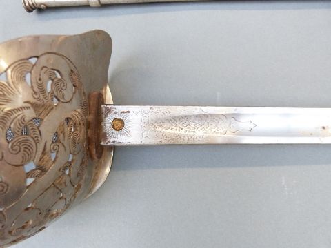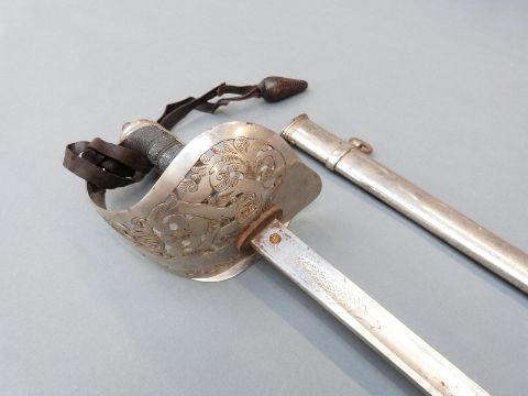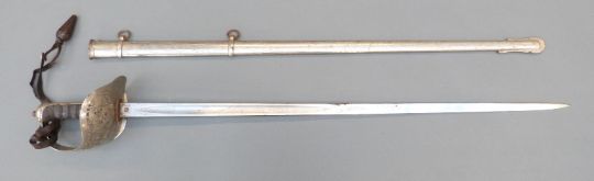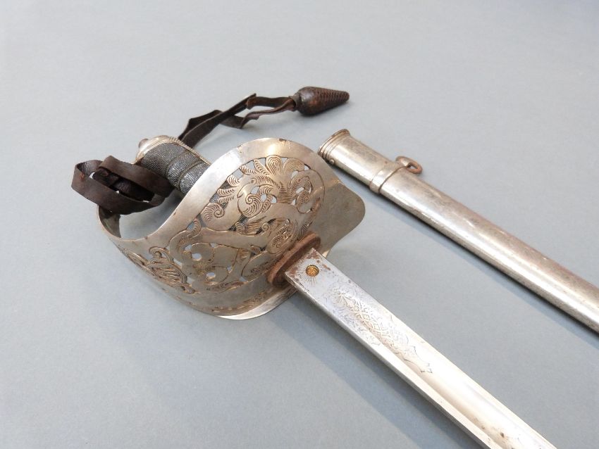 Edward VII British Infantry 1897 pattern officer's sword with Steamer maker's mark scabbard, numbered M5497, in scabbard, by repute formerly the property of Major F E Wood RAMC and sold by a direct descendant