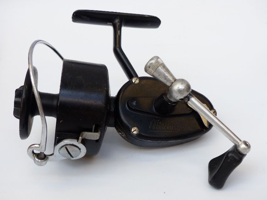 A collection of vintage leather cast wallets including Hardy empty leather reel box, Mitchell 300 fixed spool reel, Wheatley box etc