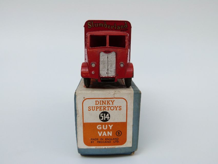 Dinky Supertoys diecast model Slumberland Mattresses Guy Van with red body and hubs 514, in original box.