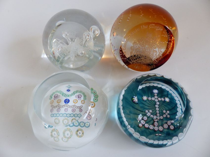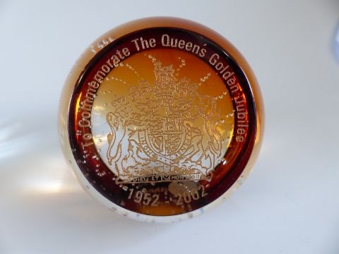 Four Caithness Glass limited edition Royal commemorative paperweights Vivat Regina 34/250 from the Whitefriars Collection, Royal Wedding Anchor 224/500, Royal Birth Moonflower 93/750, and Golden Jubilee 123/500, all boxed with certificates
