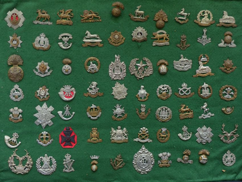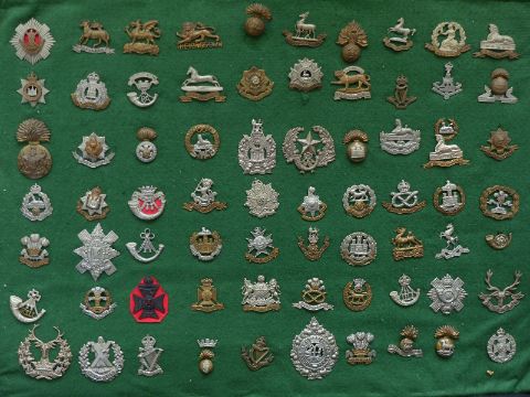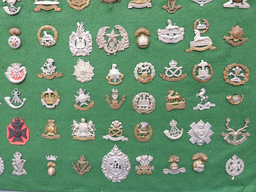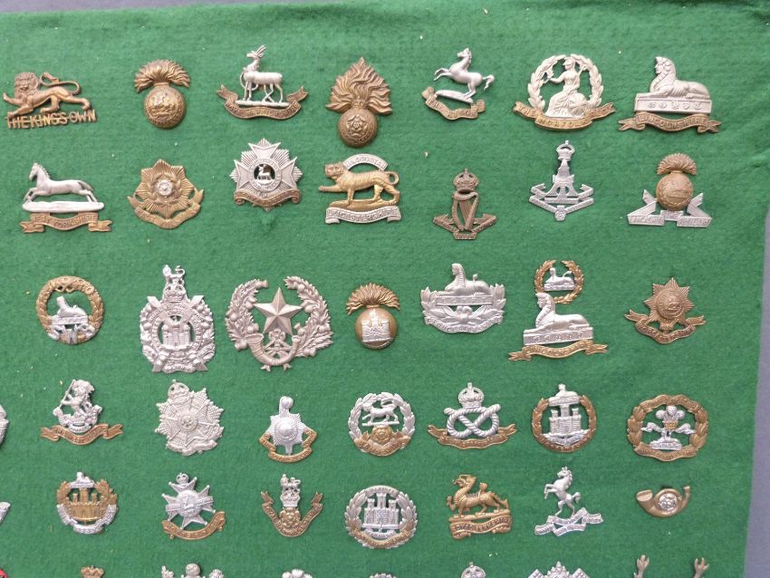 Seventy two mainly WWI era military cap badges including Irish and Scottish regiments, Connaught, Leinster, Dublin, Cameron, Bedfordshire, Norfolk, Lancashire, Suffolk, Surrey, Cornwall etc