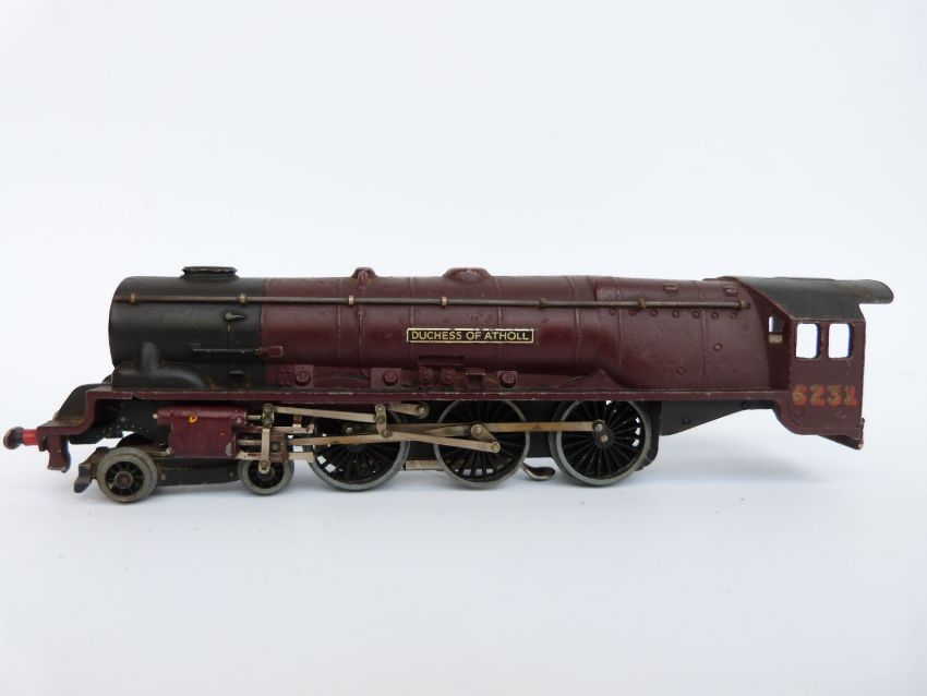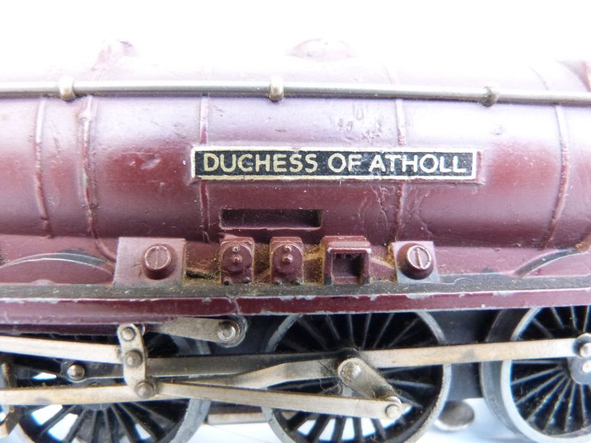 Three Hornby Dublo 00 gauge locomotives comprising Duchess of Atholl, Denbigh Castle 7032, and BR tank 69567