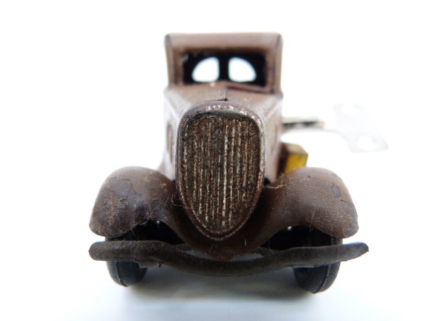 Tri-ang Minic clockwork tinplate Royal Mail Ford Light Van with brown body, red transfers, yellow fuel can and key