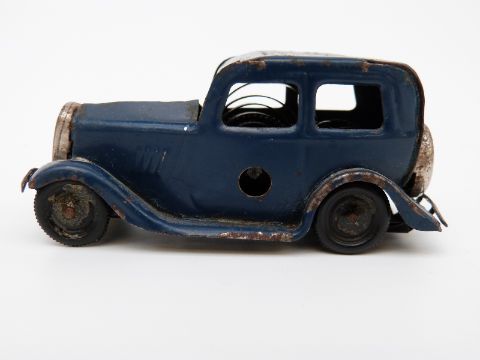 Tri-ang Minic clockwork tinplate Ford Saloon with blue body and black tyres
