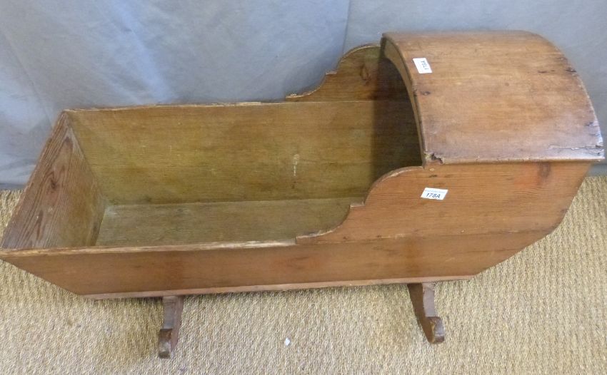 A 19thC pine cradle or crib