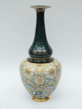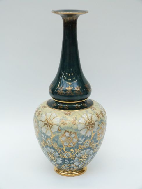 Doulton Slaters vase decorated with flowers and gilt highlights, 40cm
