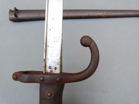 French 1874 pattern bayonet and scabbard, dated 1880 to the 52cm blade