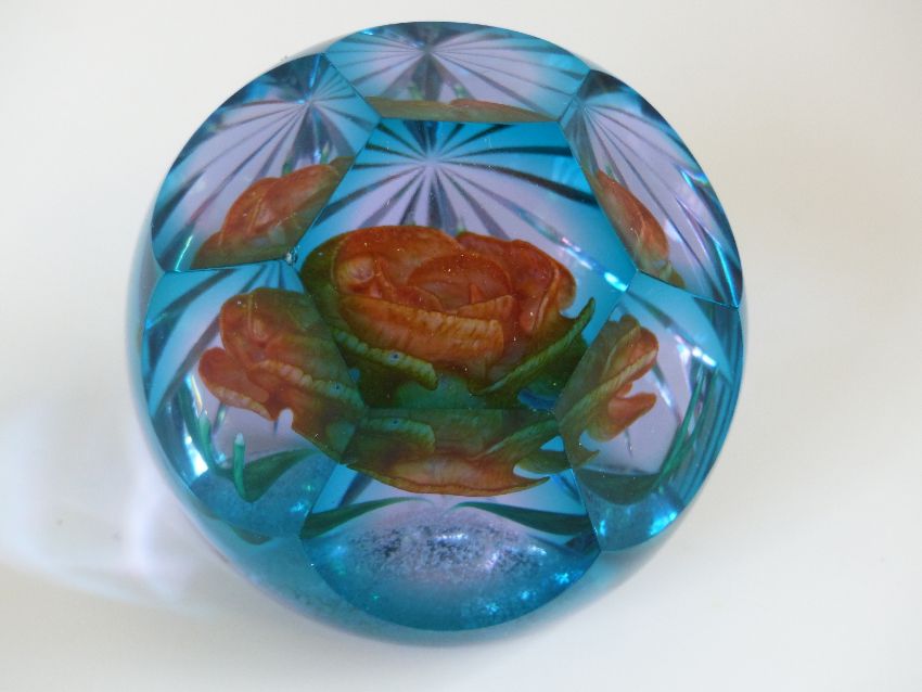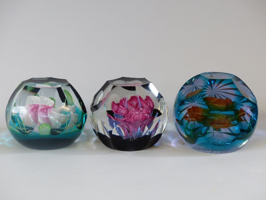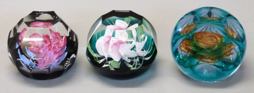 Three Caithness Glass limited edition paperweights Amore 24/50, True Love 47/100 and Midnight Mystery 18/75, designed by Colin Terris