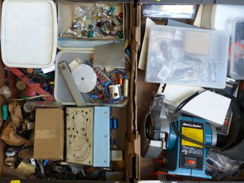 A quantity of electronic equipment including P M 44 motors, smaller motors and gearboxes, power supplies etc